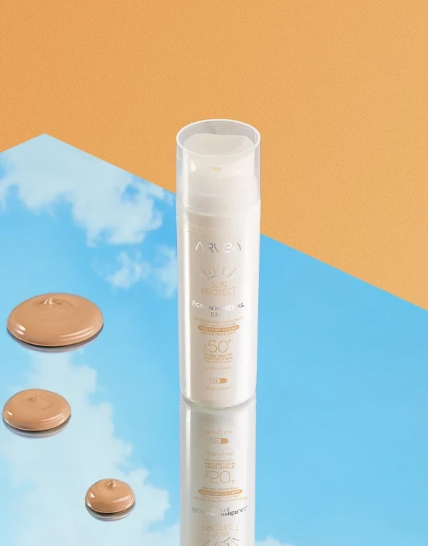 L’écran minéral teinté SPF 50+ de la gamme SUN PROTECT procure une très haute protection solaire contre les UVB et les UVA. Conçu pour tous types de peaux, ses filtres 100 % minéraux garantissent un maximum de tolérance. De texture crème légère facile à étaler et à la formule teintée et résistante à l’eau, il apporte une couvrance modulable de légère à moyenne pour un effet bonne mine.